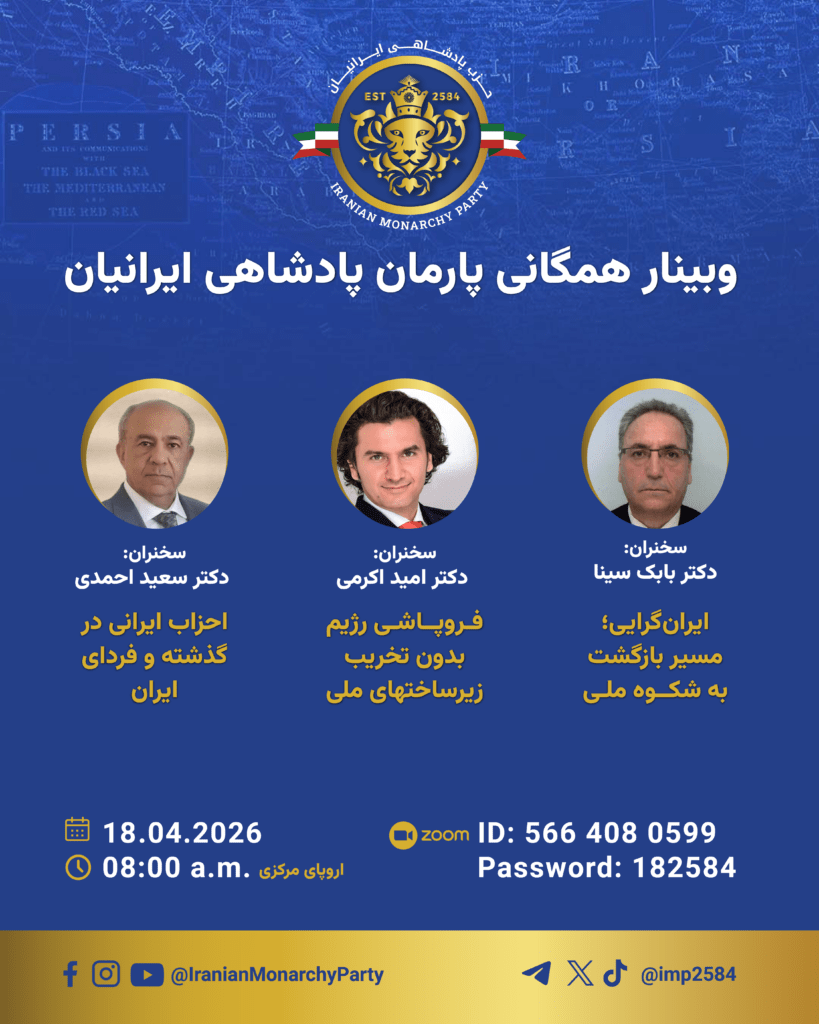وبینار «همگانی پارمان (حزب) پادشاهی ایرانیان» فرصتی برای گفتوگو درباره مسیر پیشروی ایران است؛ از بررسی احزاب گذشته تا چشمانداز بازگشت شکوه ملی.
